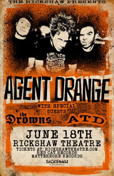 Legendary SoCal power trio Agent Orange bring their blend of frantic punk and surf rock to the Rickshaw with support from The Drowns and A Total Disappointment!