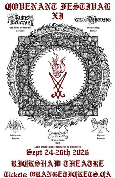 COVENANT XI will take place from September 24-26, 2026, as a mouth to hell promises to open in Vancouver, British Columbia, within the consecrated confines of the Rickshaw Theatre. For three nights, the boundaries between the Within and the Beyond will thin next to nothingness once again.